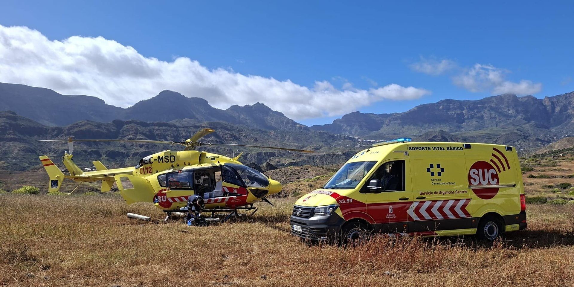 FUENTE: Servicio de Urgencias Canario (SUC) A primera hora de la tarde de este sábado (7 de marzo), un helicóptero medicalizado del Servicio de Urgencias Canario (SUC) trasladó a un motorista herido grave tras un accidente de tráfico en la Carretera GC-65, en el municipio de Santa Lucía (Gran Canaria), según se informó en un comunicado del Centro Coordinador de Emergencias y Seguridad (CECOES) 1-1-2 del Gobierno de Canarias. Según la valoración de los afectados proporcionada por el Servicio de Urgencias Canario (SUC) se trata de un “Hombre que, en el momento inicial de la asistencia, presenta politraumatismos de carácter grave, trasladado en helicóptero medicalizado del SUC al Hospital Universitario Insular de Gran Canaria. Mujer que, en el momento inicial de la asistencia, presenta cervicalgia y policontusiones de carácter moderado, salvo complicaciones, trasladada en ambulancia sanitarizada del SUC a Hospiten Roca”. Los servicios activados por el CECOES 1-1-2 fueron los siguientes: el Servicio de Urgencias Canario (SUC), con un helicóptero medicalizado, una ambulancia sanitarizada y otra de soporte vital básico; personal de Atención Primaria, con un médico y un enfermero del Centro de Salud de Tunte; efectivos del Consorcio de Emergencias de Gran Canaria; agentes de la Guardia Civil. Según se detalló en el comunicado del 1-1-2 Canarias: “a las 13:53 horas, el Centro Coordinador de Emergencias y Seguridad (CECOES) 112 del Gobierno de Canarias recibió una alerta, en la que se informaba de la colisión frontal de un motocicleta y un turismo”. “El 112 activó de inmediato los recursos de emergencia necesarios. Personal del SUC y del Centro de Salud de la zona valoraron y asistieron a los dos afectados en el accidente, para trasladarlos a los hospitales mencionados. El motorista, una vez estabilizado, fue evacuado en estado grave en el helicóptero medicalizado y la ocupante del turismo, que resultó herida de carácter moderado, fue trasladada en ambulancia sanitarizada. Los Bomberos aseguraron los vehículos accidentados y colaboraron con el resto de los recursos de emergencias. Guardia Civil reguló el tráfico en la zona y realizó el atestado correspondiente”.